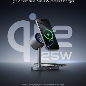 AUKEY Qi2.2 MagFusion 2X Wireless Charging Station 2-in-1 Magnetic Wireless Charger LC-MC213 (Wall Charger Not Included)