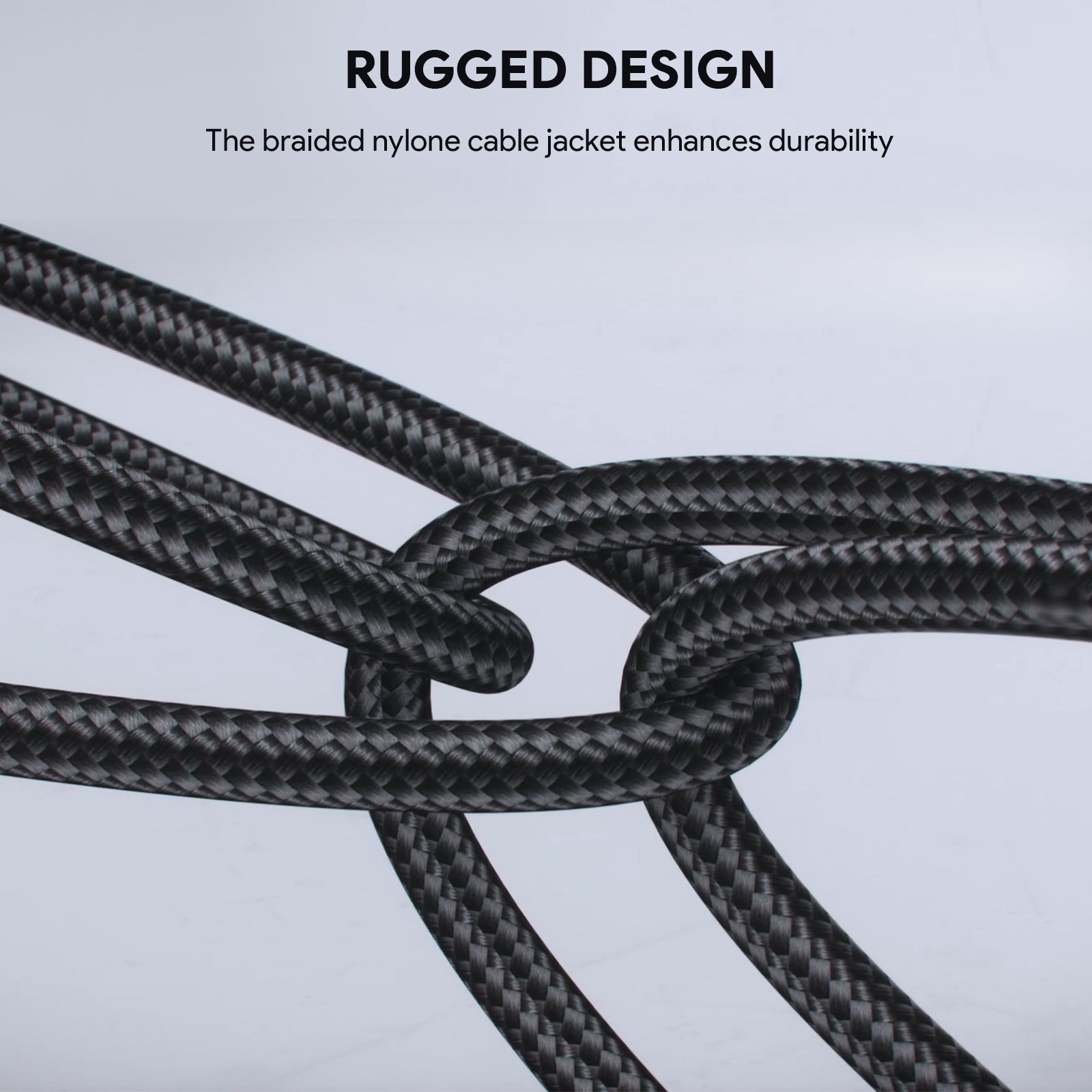 Braided nylon jacket protects the internal wires from abrasion, impact, and bending, making them resistant to wear and tear.