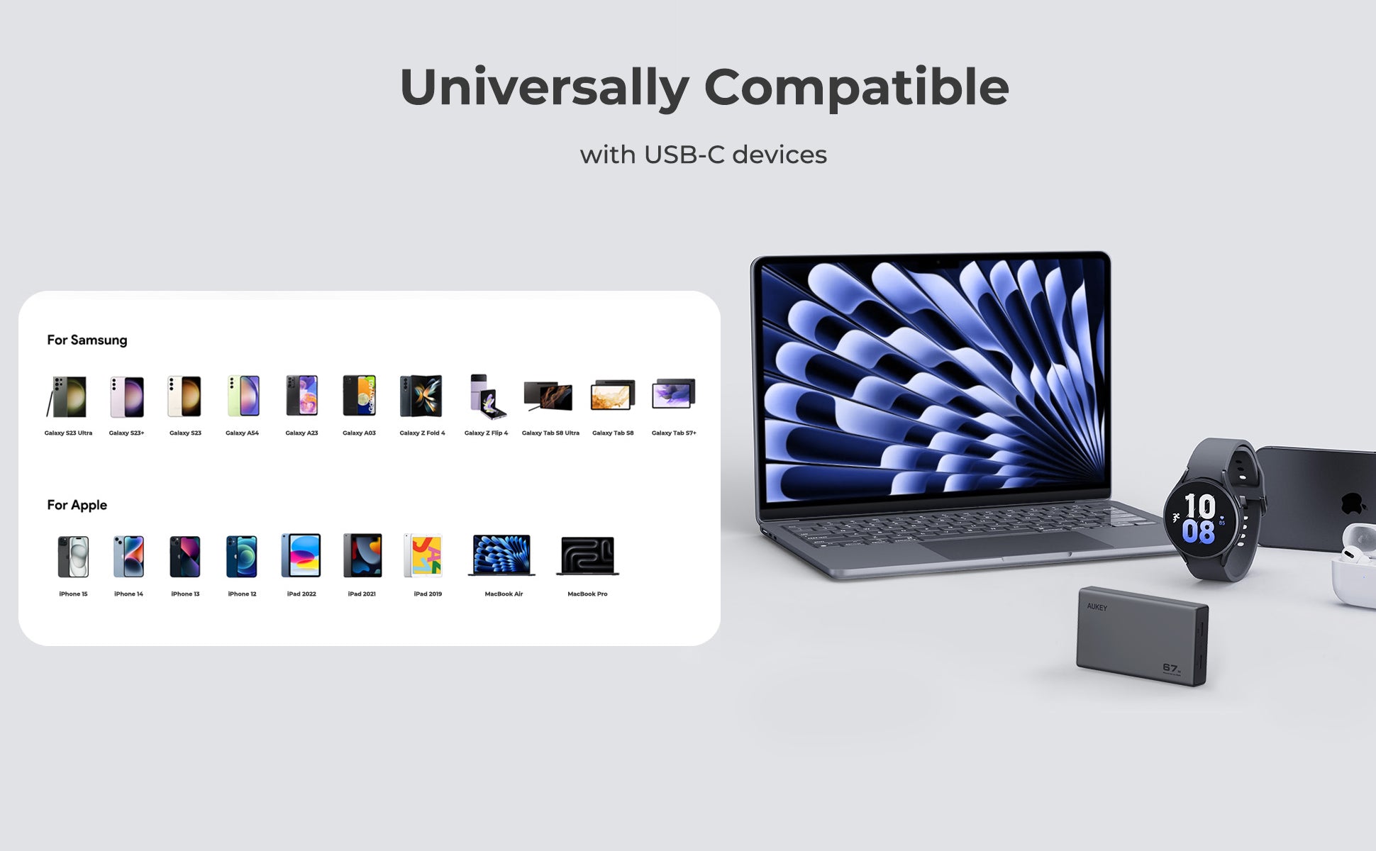 Widely compatible with Apple, Android and other USB-C supported devices.