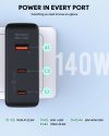 140W PD3.1 Technology:Charges laptops quickly with full performance.Three Ports, No Speed Drop:Keeps charging speed consistent across all three ports.Wide Compatibility:Supports iPhones, AirPods, iPads, Android devices, and USB C laptops.Universal Plugs:Includes US, UK, and EU plugs for international travel (applies to model PA-B7O).Set and Forget:Automatically switches to trickle charging to protect devices.Safety Certified:USB-IF Association certified PD protocol chip ensures safe charging, even at fast speeds.