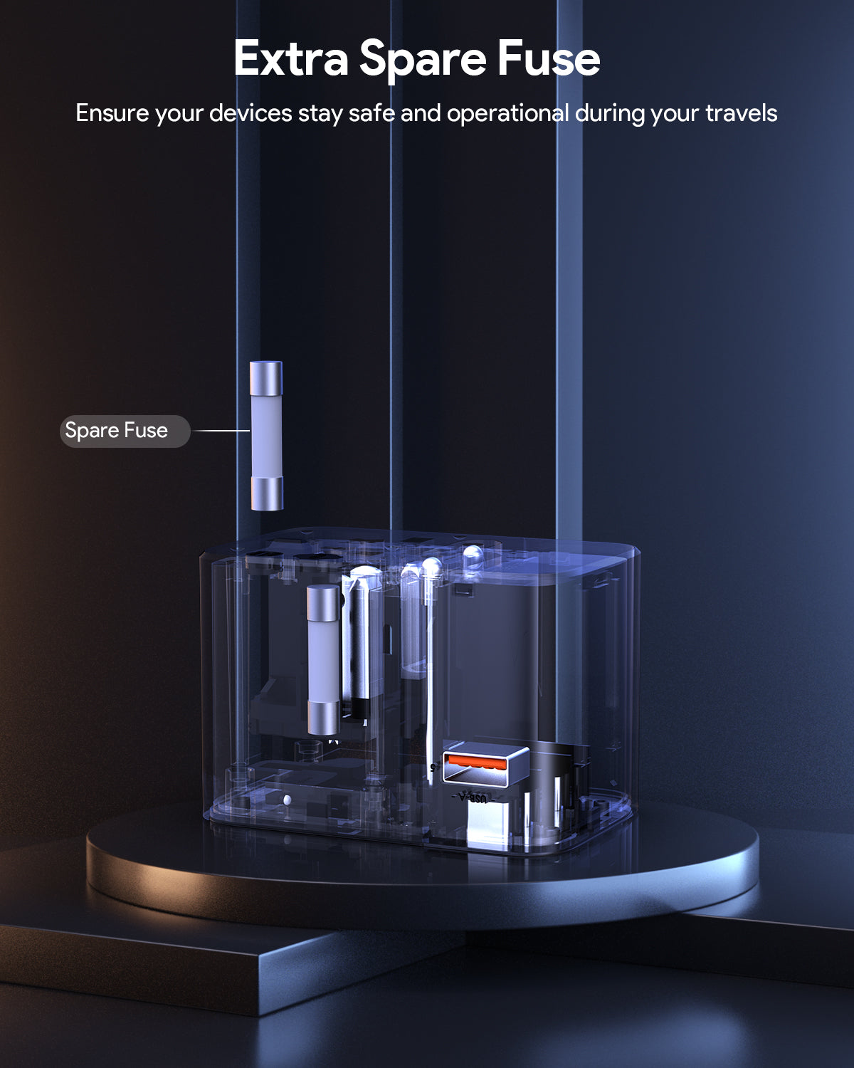 Safeguard your devices with short-circuit, overvoltage, overcurrent & overheating protection.AUKEY PA-TA08A Travel Mate 65W GaN Universal Adapter with USB Ports