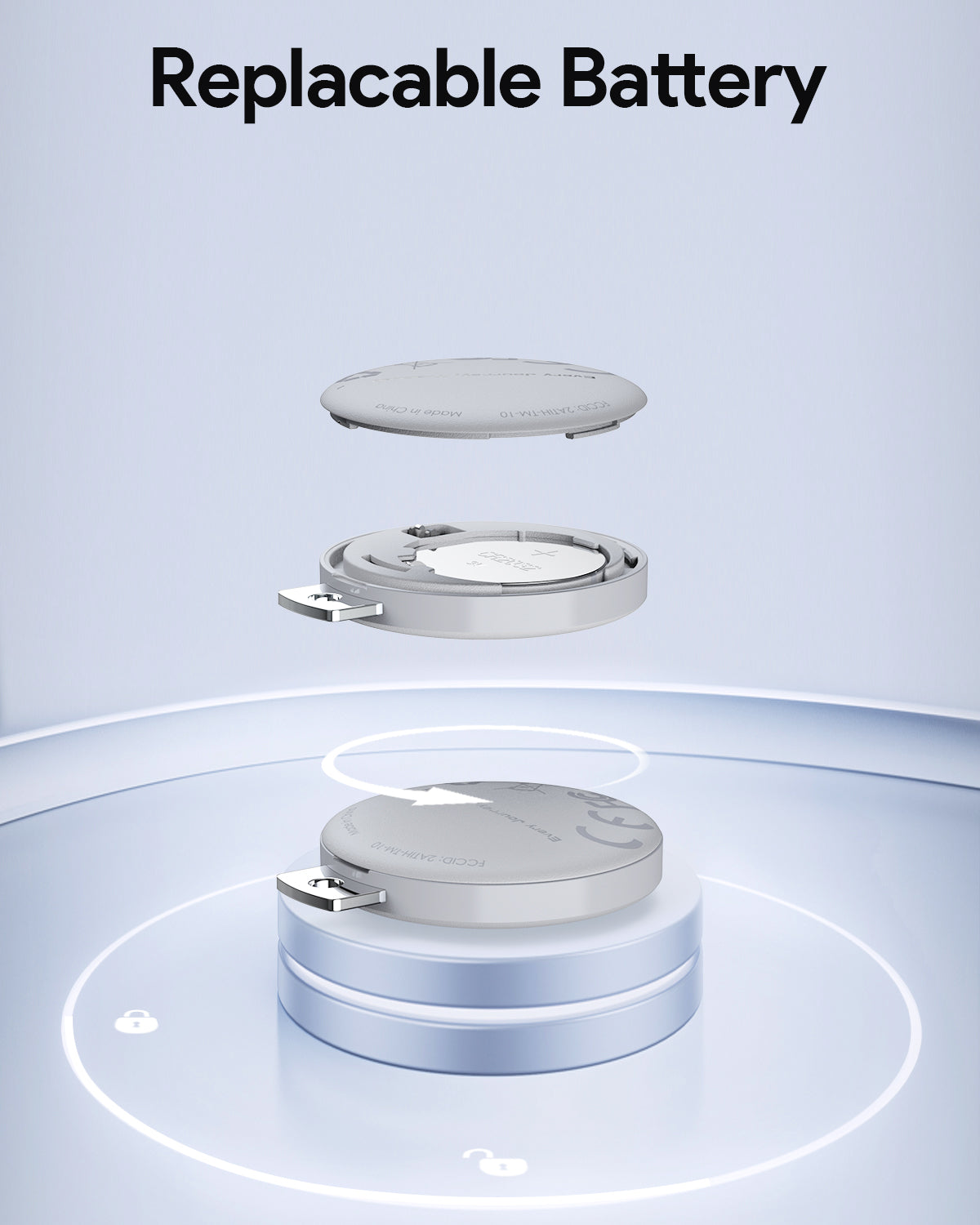 This tracker helps you keep track of your personal belongs. Just attach it to items like your keys, toys, or wallets to find them effortlessly.
