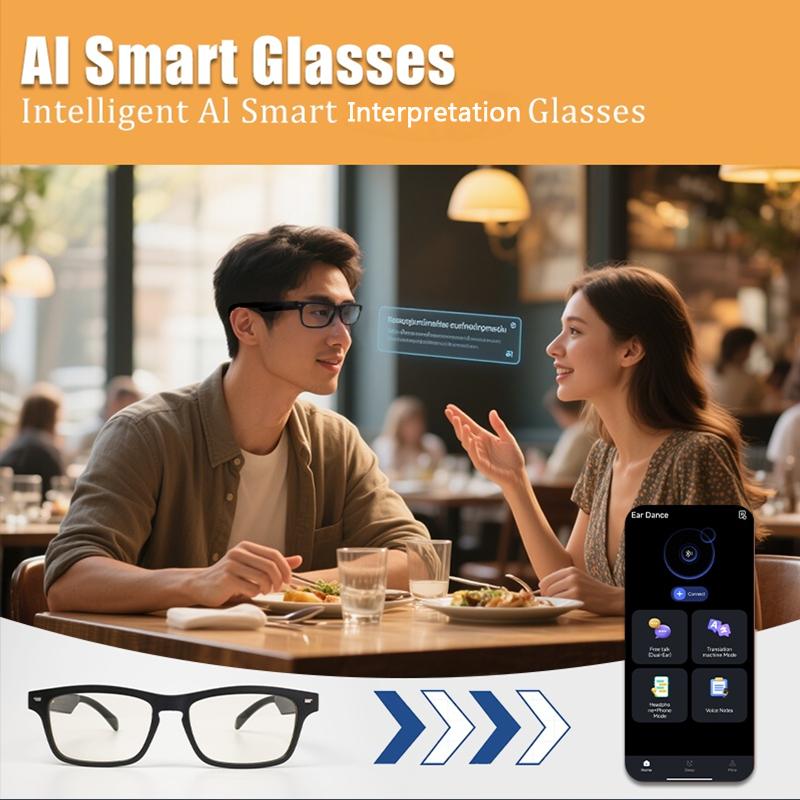 Al Smart Glasses-Supports Real-Time Multilingual, BlueLightBlocking Lenses, Clear Audio Earphones, Built-inSpeakers,Sunglasses-ldeal for Travel, Meetings, TradeandBusiness bluetooth-compatible creative sport smartglass Wearable Devices