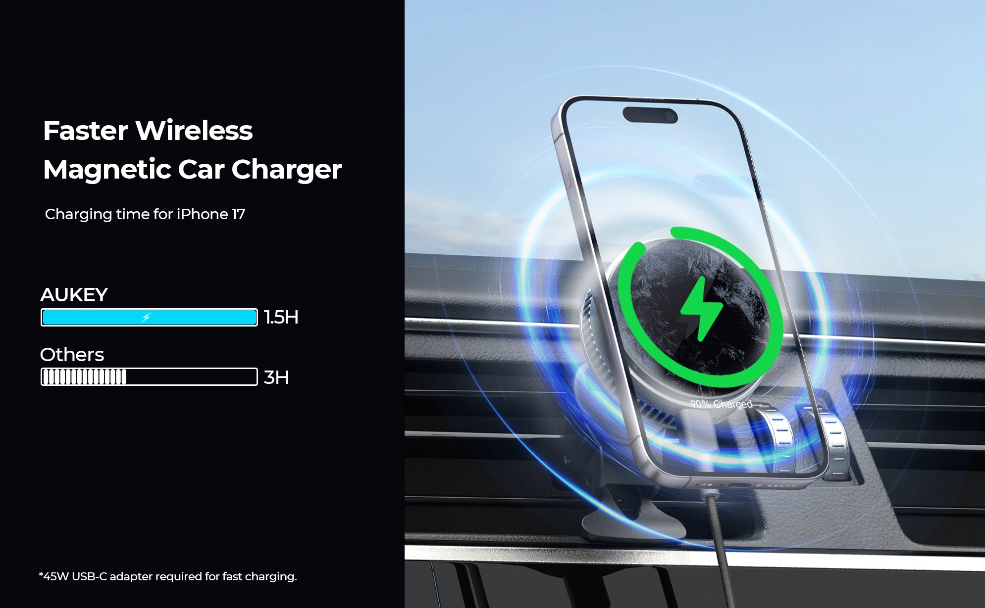 AUKEY MagFusion Dash Qi2 Wireless Charging Phone Mount HD-MC13